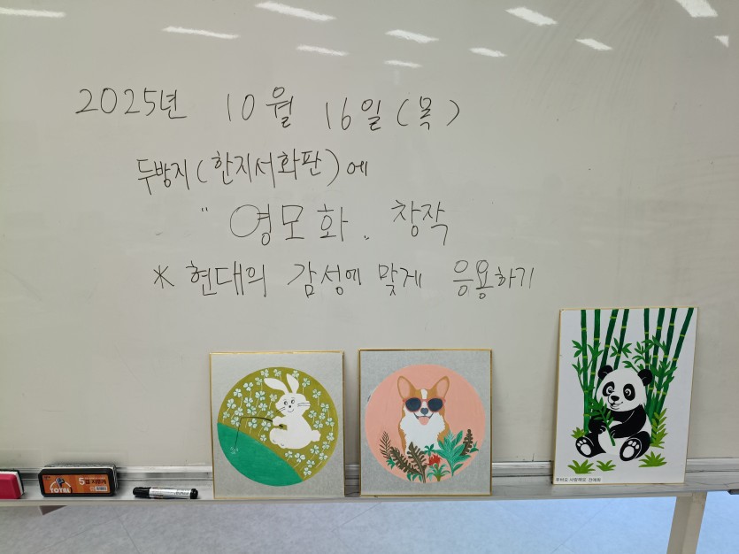 2025년 <문화학교> 2학기 미술 페이지 정보 작성자 무안문화원 댓글 0건 조회 12회 작성일 26-01-14 14:12 본문 2025년 9월부터 12월까지 진행된 문화학교 2학기 미술 수업 사진입니다. 목록 이전글2025년 <문화학교> 2학기 몸-마음치유 26.01.14 다음글2025년 <문화학교> 2학기 오카리나 26.01.14 댓글목록 댓글목록 등록된 댓글이 없습니다.
