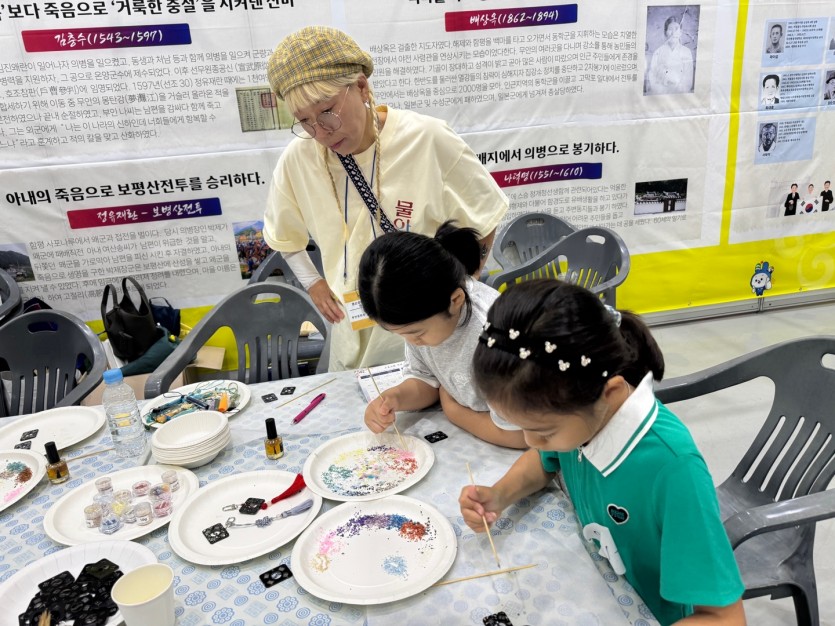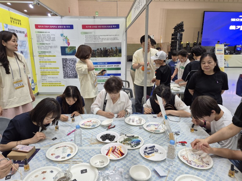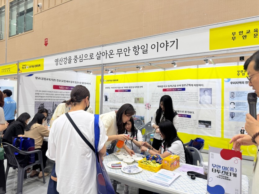 무안교육지원청과 함께 무안의 의(義) 역사 전시 및 해설, 무안 의(義) 타투스티커 체험, 태극기 자개 키링 만들기 등을 진행하며 많은 분들과 소통했습니다.